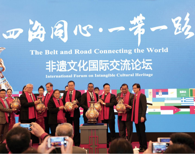 以“一带一路、四海同心”为理念,由著名文博专家林亚明先生策划指导,隆重推出“一带一路 四海同心 ”山水画精品展活动和“四海同心”景泰蓝国礼。以承载一带一路丝路文化内涵的《四海同心》景泰蓝精品作为一带一路文化国礼,让中华优秀文化走出中国,面向世界,向“一带一路”沿线65国展示中华传统工艺的“国家名片”。由此产生了广泛的影响,得到了相关领导人的充分肯定与社会各界的普遍赞誉。