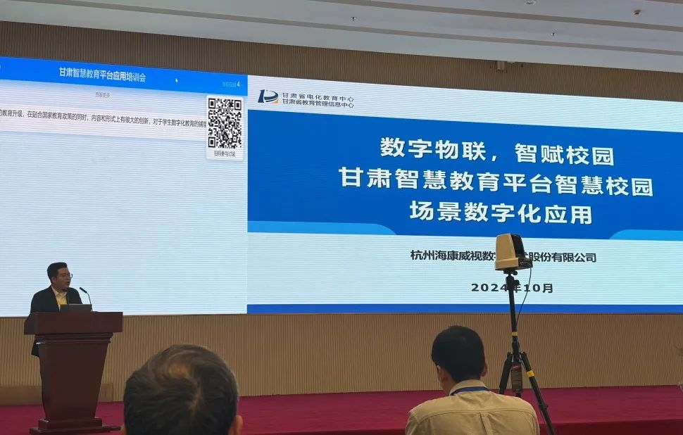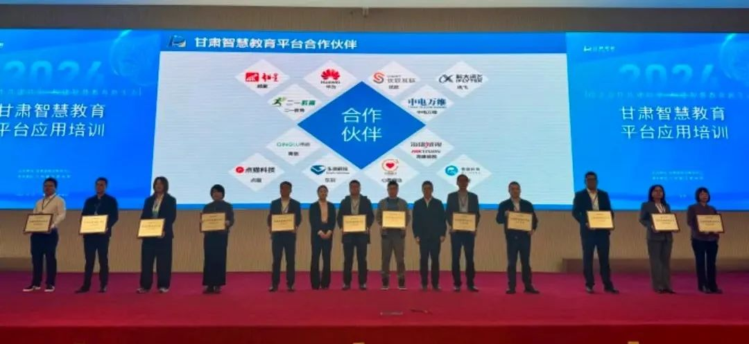 近日,2024年甘肃智慧教育平台应用培训在兰州新区举行。会上,省电化教育中心主任梁翔、副主任邵芸致辞并为海康威视等12家合作伙伴授牌。
