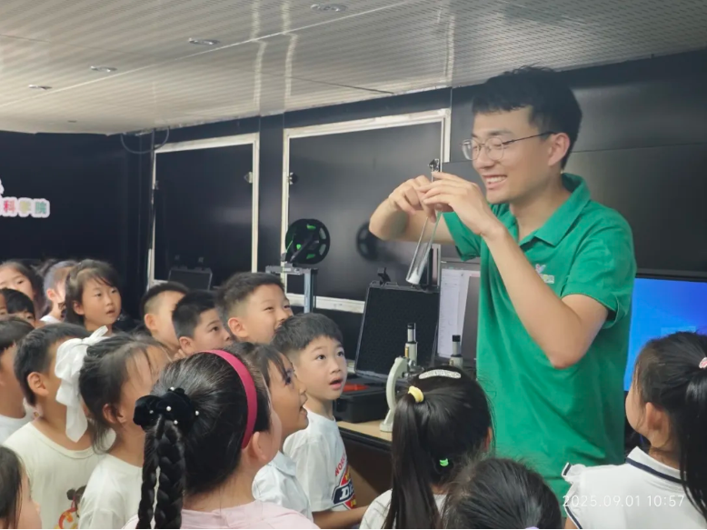 开学典礼落幕,本次“科创领航 智优市南”科学教育示范活动紧接着开启,校园瞬间变成 “科学探索乐园”。