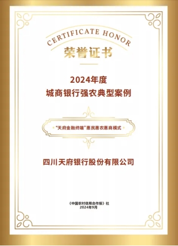 在众多全国城商银行中,四川天府银行凭借其在金融强农方面的卓越表现和创新模式,成功荣获2024年度城商银行强农典型案例。这一荣誉不仅是对四川天府银行在金融支农领域努力的肯定,更是对其在推进农业现代化、助力乡村振兴方面所做出的积极贡献的高度认可。