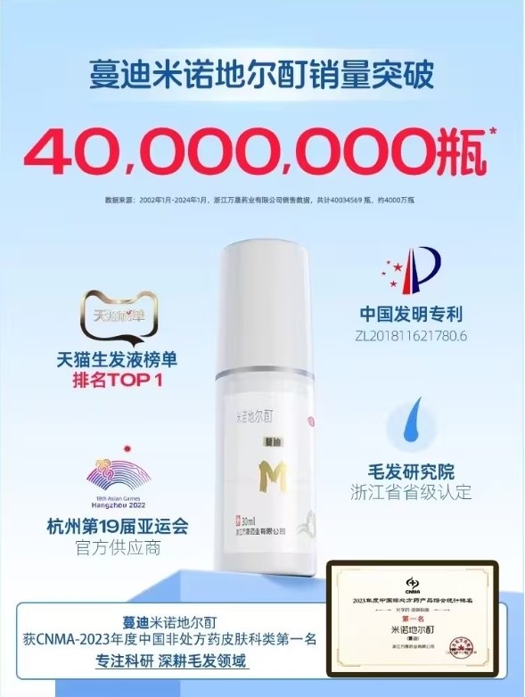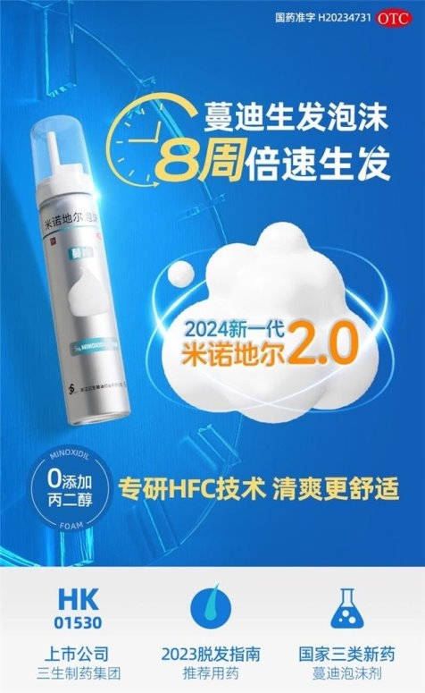 在剂型创新方面,今年,蔓迪推出了国内首款获批上市的米诺地尔泡沫剂型。相比传统的搽剂,蔓迪泡沫剂不含可能导致过敏反应的丙二醇,提高了头皮的耐受性。泡沫剂型的药物渗透率更高,有助于快速发挥药效,促进毛发生长。