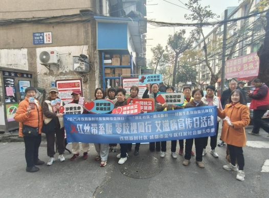 为进一步普及艾滋病防治知识,消除居民对艾滋病的认知误区与歧视心理,提升社区居民自我保护意识和健康素养,2025年12月1日,铁路新村社区联合成都市金牛区红泥社会服务中心在沙洲街开展艾滋病宣传日活动,以直观易懂的形式为居民送上“健康防护指南”。