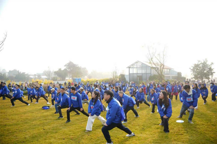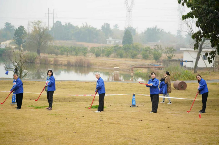 全体参赛选手在运动达人的带领下进行了活力四射的集体热身活动,随后蹴鞠技巧赛、捶丸比杆赛、飞盘个人投掷赛、飞盘团体接力赛、旱地雪球团体对抗赛六大项目的角逐正式开始。值得一提的是,它们既是本次运动会的竞技项目,也是顶佛寺村未来将持续运营的户外体验项目,兼具文化底蕴与竞技趣味。
