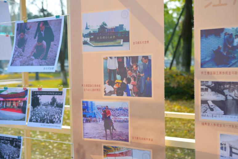 在【时光长廊·印象金马】展区,一场无声的“对话”悄然展开。展板一侧是早年街巷的模糊影像:狭窄巷道、低矮瓦房、泥地上嬉戏的孩童;另一侧是今日金马的生动写照:整洁街道、现代小区、绿意盎然的公园与设施完善的公共空间。