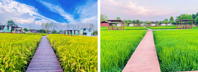 在坚守生态底线的前提下,稻田记忆生态园充分地利用好生态和旅游资源优势,助推脱贫攻坚与乡村振兴的有效衔接,让当地老百姓依靠好山好水好生态,收获实实在在的幸福感,也充分依据资源的属性、景观特征及其现存环境,提供草坪婚礼(宴会餐)等宴席服务,举办了多场中大型现场交流会,建造可容纳 40 人的民宿建筑,为留宿的客人营造一个干净、安全、美丽的环境,以及“月月景色不同,四季鲜花各异”的意境,在科普、农教、生态、助农等方面做出积极的贡献。