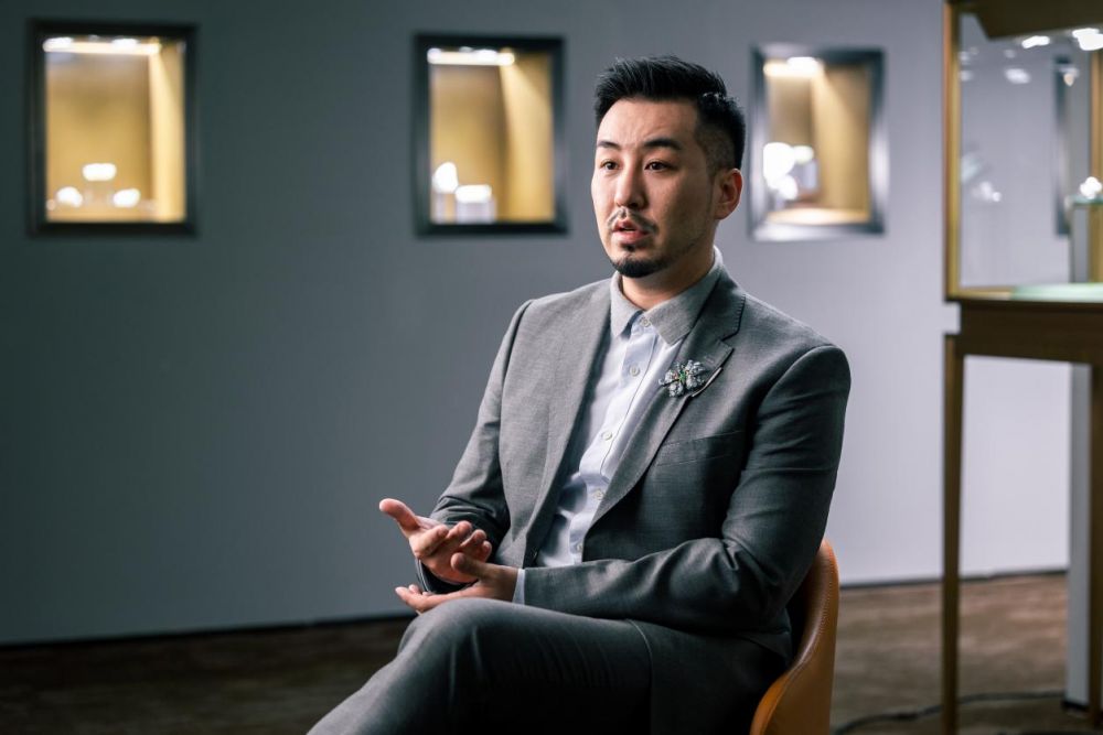 这种认知促使马瑞走上创新之路。他打破“白玉为尊”的传统认知,将钛合金、珐琅、钻石等多元材质与和田玉巧妙融合,既保留和田玉的温润内敛,又通过现代材质的特性拓展作品的表现力。以获得意大利A’Design Award的钛合金珠宝《繁星》为例,他将和田玉籽料打磨成细小的圆珠,如同夜空中的星辰,再与轻盈坚韧的钛合金框架结合,打造出兼具东方意境与现代设计感的珠宝作品。这种跨材质实验不仅解决了传统玉雕作品笨重、佩戴不便的问题,更赋予和田玉雕刻全新的视觉语言。