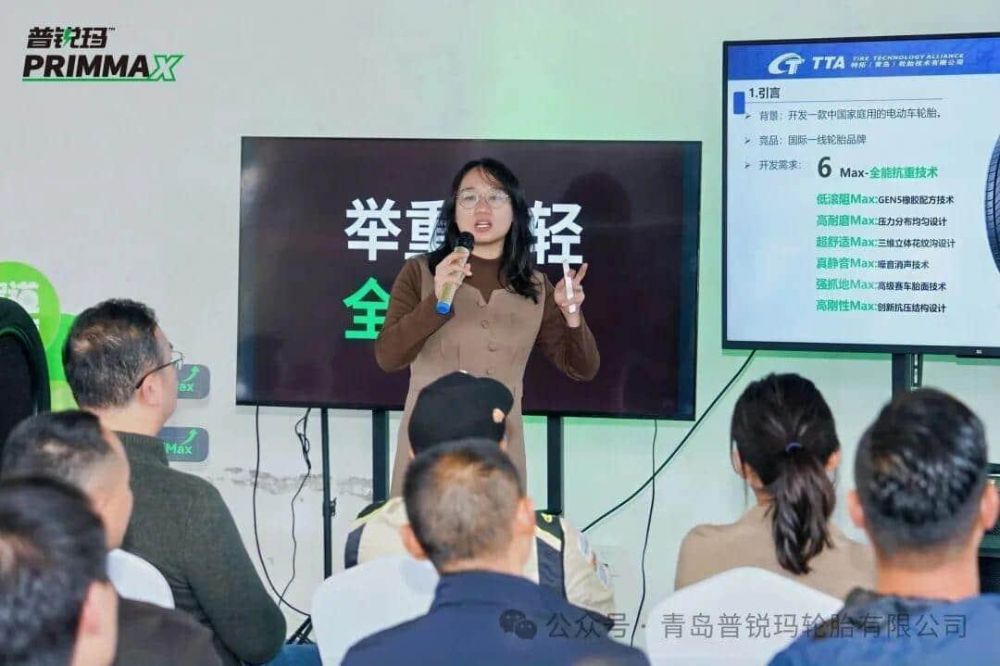 发布会现场,普锐玛品牌技术负责人刘剑美女士向与会者介绍了品牌定位与产品理念。她指出,普锐玛是随着中国新能源汽车发展应运而生的“中国家庭电车轮胎”品牌,也是目前国内唯一只专注于电车轮胎研发与制造的品牌。她分析了电动汽车对轮胎的独特要求:更重的车身需要更强的承载与耐磨性;瞬时大扭矩需要卓越的抓地力;没有了发动机噪音,对轮胎静音性要求更高;续航焦虑则要求轮胎滚阻更低、更节能。普锐玛正是为系统解决这些痛点而生。