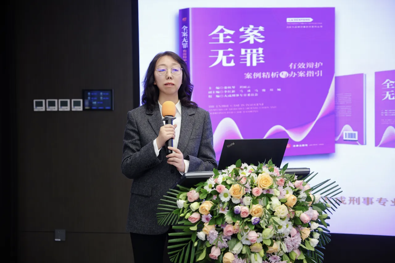 接下来,大成刑委会副秘书长淳岩作为编委会代表发言,她分享了新书编撰的初衷与过程,展现了一线刑辩律师对专业深耕、经验传承的执着。她提出,新书收录的21个案件,都是历经司法检验的全案无罪典型案例,本次编纂的意义远不止于成果的梳理与展示,更是一次法治理念的传播与呼应。