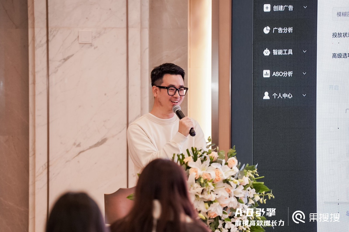 在活动的开幕致辞中,秦点科技CEO张科对公司四大板块的业务发展做了全面展望,并向华东地区的合作伙伴正式推介全新升级的果搜搜App Store投放决策平台。随后,果搜搜运营负责人孙万龙详细解读了产品的七大亮点功能和核心竞争优势,并通过现场演示让与会者直观感受到了产品的便捷与高效。