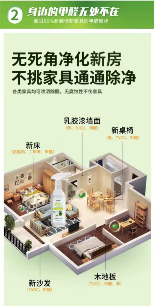 甲醛污染问题严重,家居环境的健康与安全尤其重要。掌控境界生物酶甲醛分解清除剂凭借温和配方和高效除醛能力,改善室内空气质量,守护着全民的家居环境,让消费者的每一口呼吸都是清新安全的。