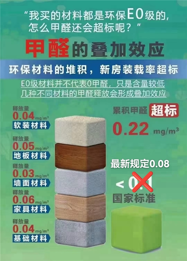 其实,甲醛是自然界中广泛存在的物质,人造板材中的粘合剂是主要来源之一,就连人们比较信任的实木木材,其实也有可能存在甲醛,更不用说油漆、塑料制品、化纤布料等日常家居生活中常见的产品了。栏目组诚邀江西豆芽绿环保科技有限公司相关负责人进行了访谈对话,主要对装修使用了环保材料为什么还是会甲醛超标?如何深层除甲醛,从根源解决甲醛超标的一系列问题的探讨。豆芽绿环保负责人回答:试想一张40公斤重的基础环保型人造板中,可能含有近3600毫克的甲醛。级别越高甲醛含量越低,如果用了几十张或上百张这样的板材,其甲醛含量可以计算出来。而空气中的环保标准是0.08毫克 /m3,许多装修公司和业主很不理解:装修好后再检测,结果空气中甲醛含量仍超过国家规定的环保标准。在有限的空间用了过多的人造板材,加之又没有进行装修污染的治理,叠加污染超标是当然的了。 正是意识到了甲醛对人体健康的危害,越来越多人开始重视高效安全的除甲醛的方式方法。
