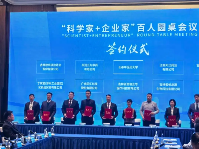 朱总代表公司与长春中医药大学在科技、人才、药材资源等方面签订战略发展合作协议。搭建政产学研平台,塑造企业发展新动能,构筑发展新优势。