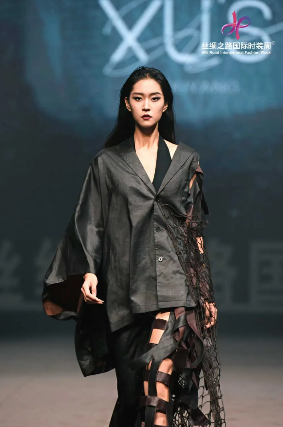 XU'S品牌专注于探索黑色美学的魅力,通过独特的面料选择和处理技术,赋予每件服饰极富深度的哲学意义,展现了另类而独特的时尚美感。