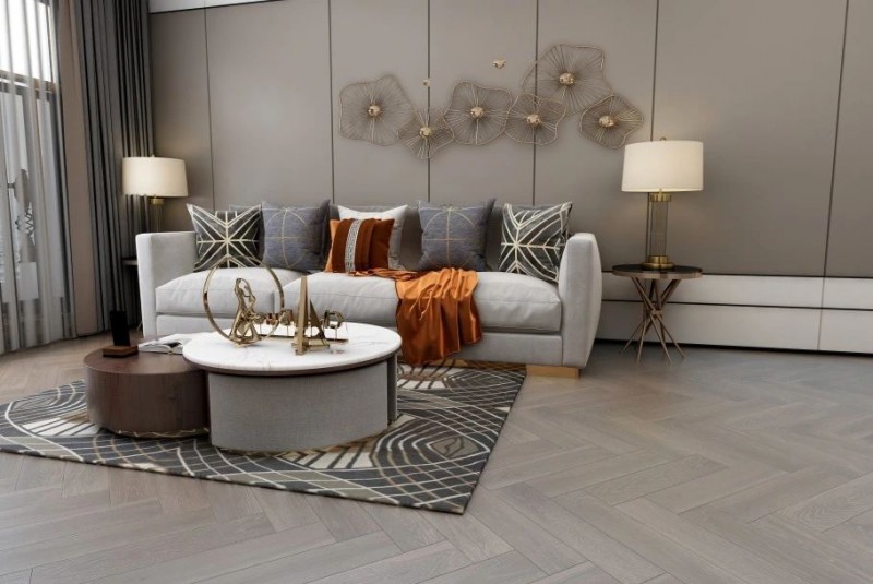 久盛丰富的原材资源,可以为久盛纯实木地暖地板的风格创新提供更多的可能性和坚实的基础。能够让地板的规格尺寸不受限制,生产出市面少有的1900mm、2000mm这样的大规格尺寸。即使是人字拼、鱼骨拼这类比较复杂的花式拼法地板,久盛依然能做到大规格尺寸。