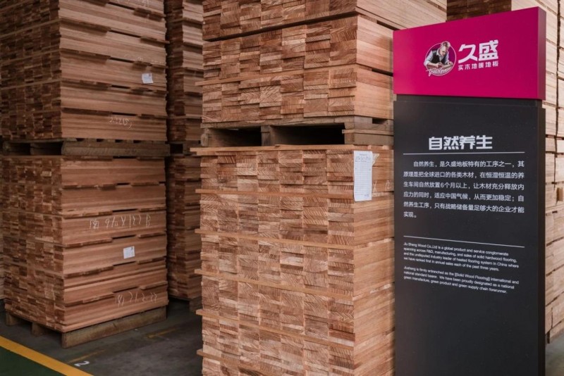 久盛的所有进口木材都会进行6个月以上的“超长自然养生”,以确保木材的稳定性,让地板能够更加适应使用环境,这不仅要求企业的规模实力强,更是对原材库存掌控有着很高的要求。
