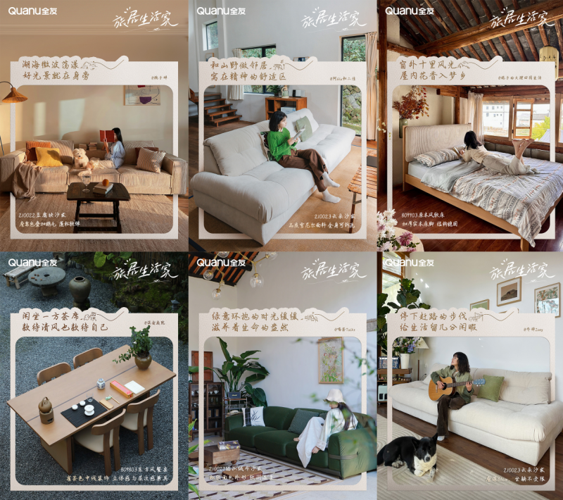 为了深度触达当下年轻人的情感需求,全友发起主题为“旅居生活家”的营销Campaign,与旅居达人进行深度沟通,邀请他们体验全友的家居新品。通过有治愈感的旅居环境,分享旅居带给他们的情绪价值和生活价值,以及旅居生活中“家具”带来的疗愈感和归属感。