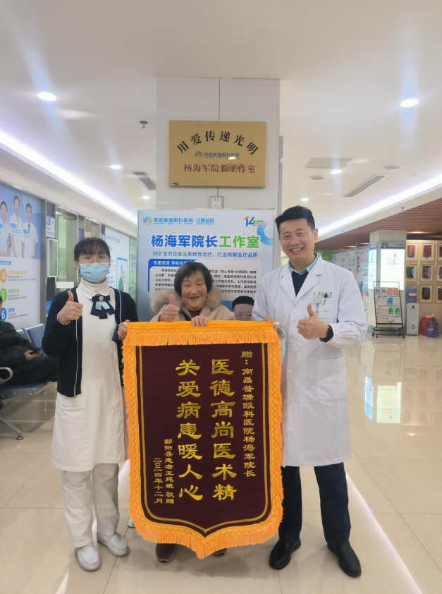 手术在杨海军院长的精湛技艺和团队的默契配合下顺利完成。术后恢复期,王阿姨的视力明显改善,眼部不适症状也得到了有效缓解。她对治疗效果感到非常满意,并表示:“南昌普瑞眼科医院的医生和护士都非常专业和热情,让我感受到了家的温暖。非常感谢杨海军院长,是他精湛的医术让我重获清晰的视界。”