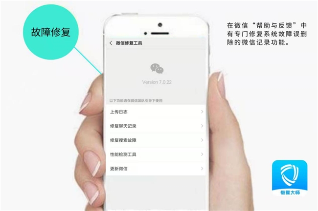 被删除的微信聊天记录怎么恢复?有些微信聊天记录不是人为操作误删除的,而是系统的原因造成聊天记录被删除,比如网络不好、手机内存不足等,都会导致微信闪退,卡顿造成微信记录丢失。对于这种情况删除的微信记录,可以利用微信的故障修复进行恢复,具体操作是打开微信的“帮助与反馈”,进入后选择“聊天记录修复”即可恢复。注意:此方法只适用于以上这种情况造成的微信聊天记录丢失,普通手动删除的微信聊天记录此方法不适用,切勿乱操作。