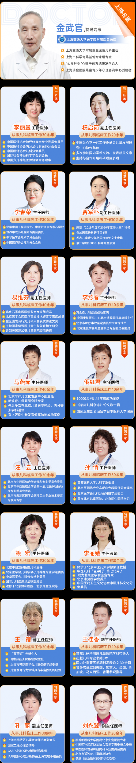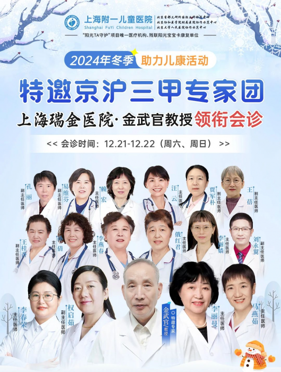为给孩子争取更大的进步空间,帮助孩子调整到极佳状态迎接期末的学习。本周末我院特邀上海交通大学医学院附属瑞金医院的金武官教授来院,联合本院的多位权威专家开展联合会诊!