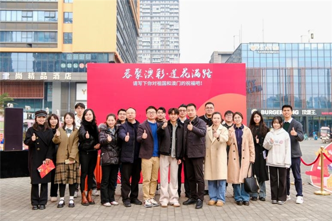 为庆祝澳门回归25周年,由中央人民政府驻澳门联络办公室广东联络部、成都市委统战部、成都市青年联合会共同指导,区委统战部、共青团温江区委、温江区人民政府柳城街道办事处、四川高等学校澳门学生联合会主办,四川高校香港学生联合会、成都海外联谊会青年委员会、成都市青年联合会海外学人及港澳台侨界别、柳城街道大学城社区协办的“‘蓉聚澳彩·莲花满路’澳门回归25周年庆祝活动暨主题作品展览启动仪式”在柳城街道大学城youth box青年空间举行,活动吸引在蓉的港澳青年40余名参与。