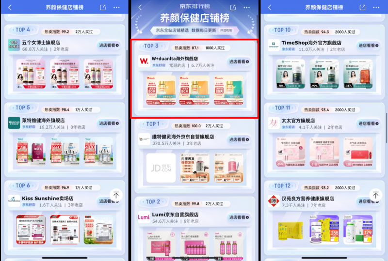 凭借核心成分的卓越功效,“”自获得美国FDA认证后,迅速风靡欧美高净值市场。短短半年内,便占据了美国男士养护领域中高端市场50%以上的份额。入驻国内市场后,在京东平台的力邀下,“W+duanlta海外旗舰店”持续入选京东全站店铺精选,稳居京东养颜保健店铺榜前列。