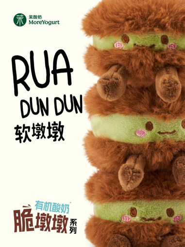 不仅如此,茉酸奶还为广大消费者们准备了特别的惊喜——软墩墩创意周边。软墩墩的上半部分呈现温暖的棕色,内馅则是清新的抹茶色。与脆硬的原版食物不同,软墩墩的外层被设计成柔软的毛绒质感,底部还有两条小短腿,搭配内馅上的可爱小表情,简直萌态十足。活动期间,购买指定脆墩墩套餐,就能获得限量软墩墩周边。