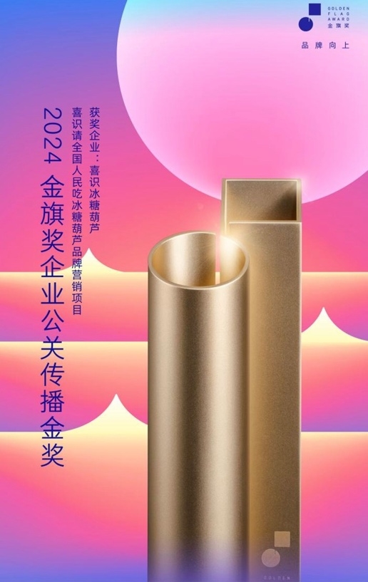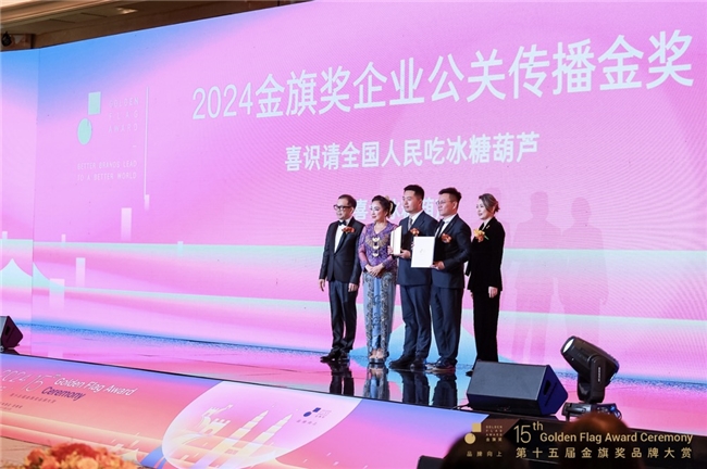 作为中国传统小吃品牌的代表,喜识冰糖葫芦不负众望,凭借出色的品牌传播实力,一举拿下2024金旗奖企业公关传播金奖,成为颁奖典礼上璀璨的明珠。