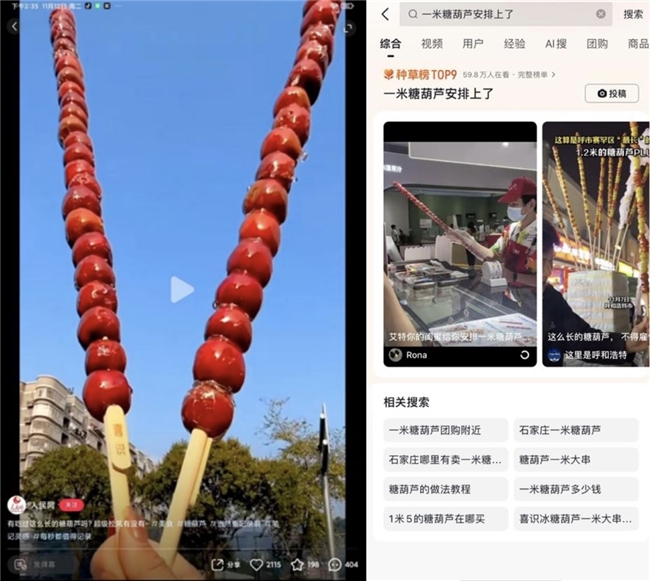 近期喜识的1米大串冰糖葫芦,就凭借超乎寻常的尺寸和极具震撼力的视觉效果,成功吸引了广大消费者的目光,每到一处都会引发人们的围观和拍照热潮,极具话题性与讨论热度,大家主动在社交媒体上分享,形成了强大的自传播效应,1米大串冰糖葫芦被赋予社交货币属性,“1米大串”相关话题更在各大社交平台屡上热搜,喜识的品牌营销再次引领行业潮流。