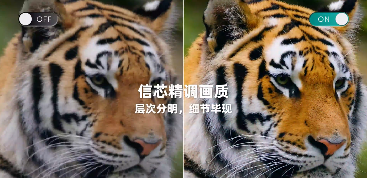 以百吋E8N Ultra为例,作为海信ULED X®全场景AI计算画质平台下的超旗舰Mini LED电视,它“感芯光屏”全面升级,画质表现力超强。E8N Ultra搭载信芯®AI画质芯片 Pro,经过海量数据算法训练,可不断优化调校影像细节,实现2K转4K的惊艳效果;定制黑曜屏,采用低反射深邃黑面板,减少倒影、反光和眩光问题,全家围坐观影,不同角度观看都清晰。在此基础上,配备6480背光分区、6000nits峰值亮度,均做到了同价位百吋天花板。