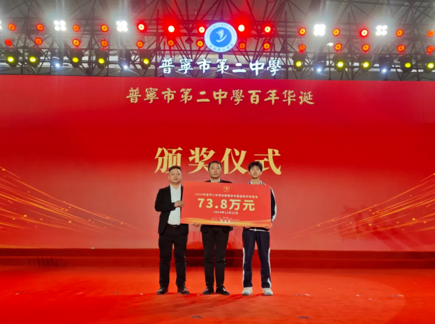 12月22日,普宁市第二中学百年华诞教育高质量发展大会隆重举行。大会期间进行了“第九届普宁二中洪氏奖教奖学基金颁奖仪式”。国际潮团总会永远荣誉主席、康芝集团董事长洪江游现场出席,为2024年度获奖的普宁二中优秀师生颁奖。