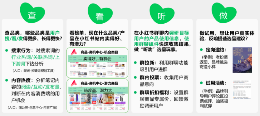 在小红书,要做个“听劝”商家。新品试用、用户调研、群聊投票,积极尝试多种互动方式带动初始用户群,并建立有效的“反馈-优化”循环机制,不断调整产品和营销策略,确保每一次互动都能提升用户体验。同时,在这一过程中努力深化品牌与用户之间的情感维系,培养忠实粉丝,形成良好的口碑效应。