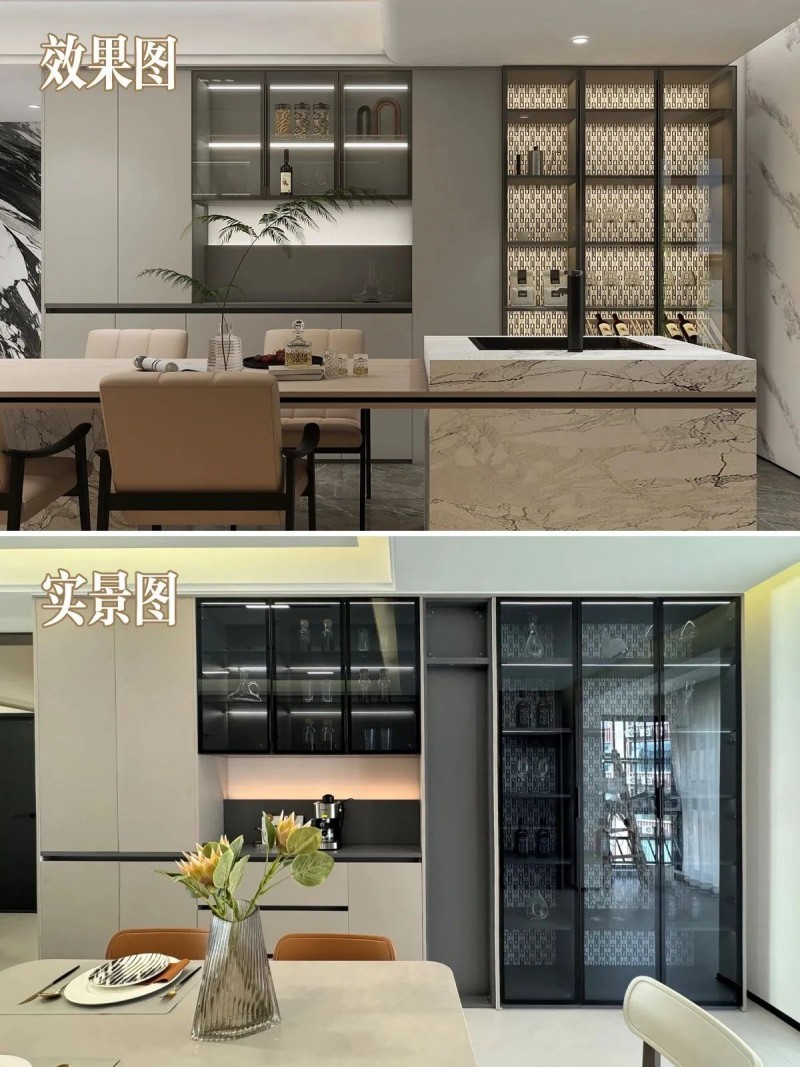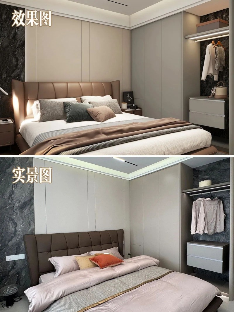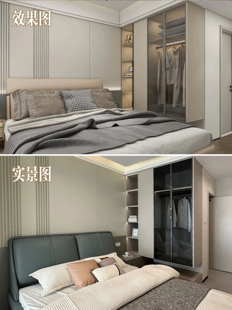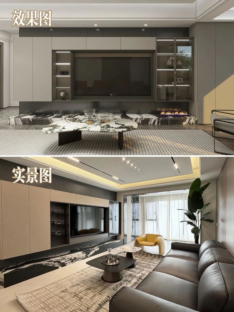 家装要考虑长期居住的舒适性和不过时的风格,实现美观与功能的完美结合,分享一套轻奢风效果图VS实景图,快来看看是不是你想要的风格吧~