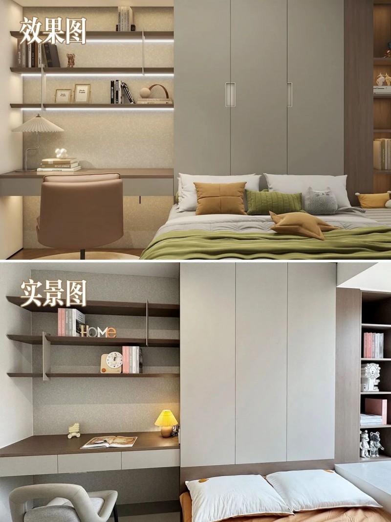 榻榻米、衣柜、书桌一体化设计,将休息、收纳与学习完美融合,记录着孩子成长过程中每一个梦想的萌芽。