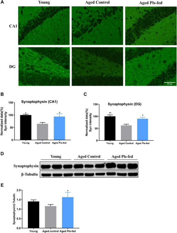 也是在这项研究中,饮食中添加了缩醛磷脂的老年小鼠,大脑突触具有很强的可塑性,学习新技能更快了,并且能形成新的神经网络。这表明膳食中的缩醛磷脂能抑制衰老进程中的突触退化。