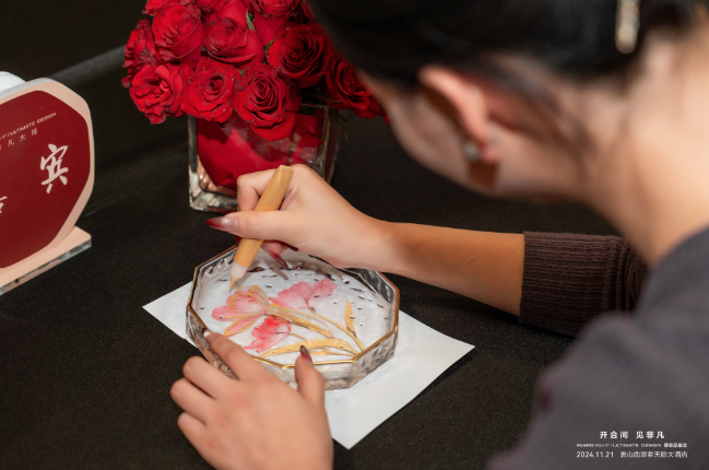 瓷韵雅致,非凡之选,每一道细腻的纹理、每一个精致的细节,都是匠人匠心坚守的见证。在嘉宾共同体验过非凡大师后,范有祥先生讲述陶瓷工艺的历史演变,以其精妙之语,剖析色彩在陶瓷艺术中的重要点睛之笔,带动嘉宾们现场进行彩盘上色创作。让现场嘉宾感受到了方寸之间艺术创作的无限可能。
