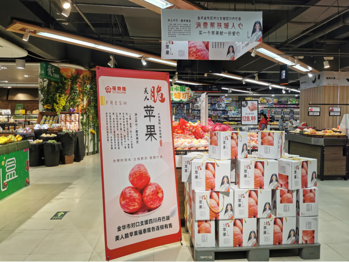 苹果丰收的季节里,金东区与丹巴县的援建合作更是结出了丰硕的果实。浙江金华市农合联农业发展有限公司拓展部经理吕亚方说:“2024年,我们公司在丹巴收购了优质的‘美人脆’苹果15万余斤,深受广大消费者的喜爱,市场反馈的效果极其出色。金东区与丹巴县的援建合作,带动了当地群众的增收致富,作为参与其中的公司,我深感荣幸,这不仅是对丹巴特色产业的有力支持,更是促进了两地经济交流与融合的重要举措,相信在持续的努力与合作下,丹巴的特色产业将迎来更加蓬勃的发展,群众的生活也将更加美好。”