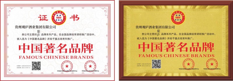 近日,由中国企业质量品牌认证监督中心及中国企业信用评价管理中心联合评选审核,贵州观庐酒业集团有限公司荣获““中国名酒”及“中国著名品牌”两大荣誉。