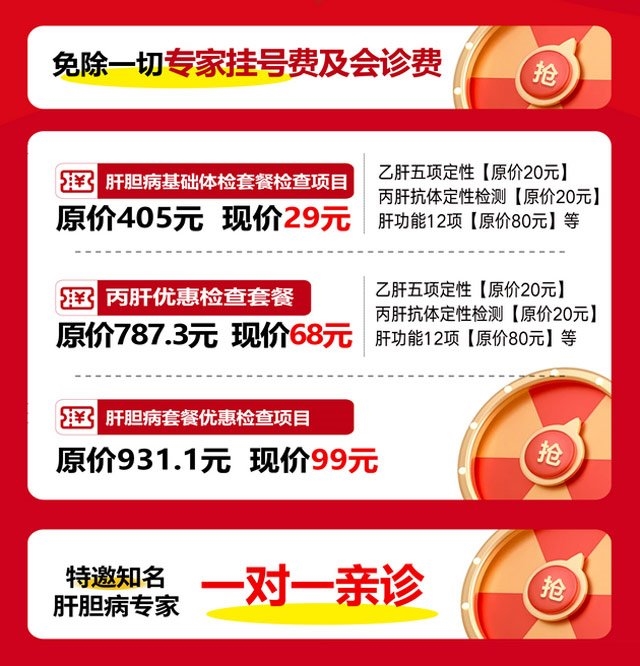 活动期间,我院特邀权威专家现场针对不同病症情况,进行1对1问诊+综合分析+专业诊断,制定个体精细化诊疗方案,助力肝胆病患者“早发现、早诊断、早治疗、早康复”,同时,来院患者还可以享受检查套餐优惠,切实减轻广大患者朋友的经济负担。