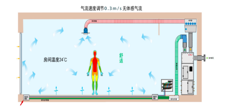设计独具匠心,采用置换式通风系统,地送顶排,新风以每秒 0.3m/s 的微风循环,无吹风感与风噪,门缝 “透气槽” 与顶部回风设计,既保障气流顺畅又隔离户间噪音。