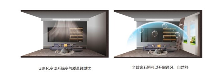新鲜充足的氧气是维持人体活力的关键要素。五恒系统才用高效的新风置换技术,源源不断地将室外经过过滤净化后的新鲜空气引入室内,确保空气每小时 100% 全置换,杜绝传统空调和新风系统带来的 “空调病”,使室内 CO₂浓度低于 800PPM,氧含量稳定充足。充足的新风量、微正压系统、略低于室温的新风以及下送上回的气流组织设计,保证人体时刻被安全新鲜的空气环绕,有效预防流感季节的家庭交叉感染。