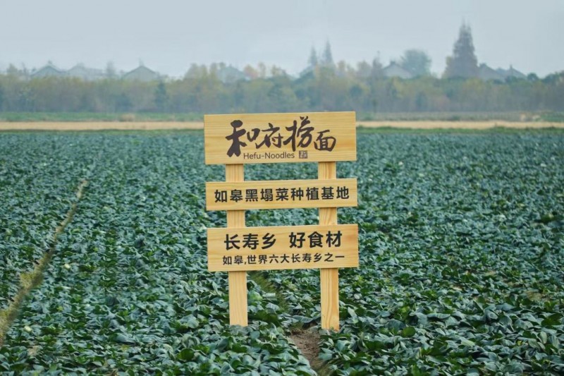为保障黑塌菜的种植,和府捞面在如皋当地部门的技术支持下,专门设立种植基地,推动黑塌菜的标准化种植。通过黑塌菜规模化、集约化的生产,既可以给当地农民增加收入,又能为和府进行稳定的食材供给,保障食材品质,让消费者可以平价地享受到长寿之乡的“长寿菜”。