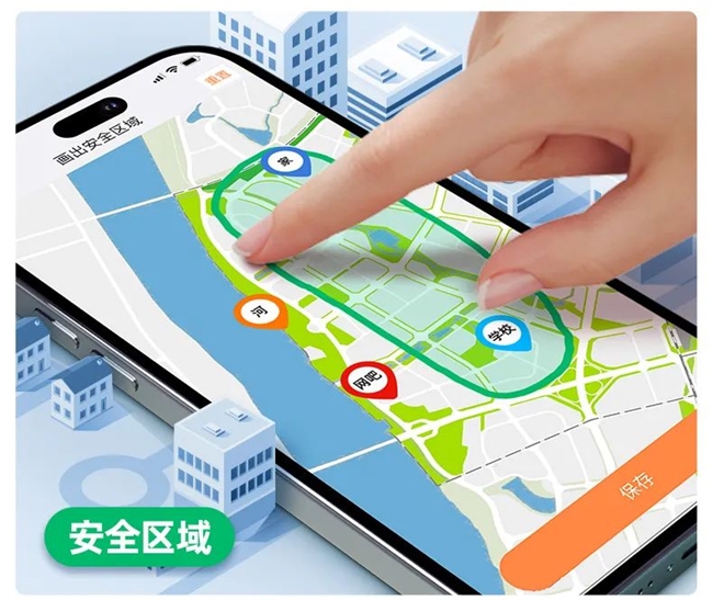家长还能通过手机 APP 轻松绘制安全区域与危险区域。当孩子靠近河流湖泊、桥梁等高危地带,或者偷偷去了网吧、游戏室,家长手机会即刻接收预警提示,实时追踪孩子动态。