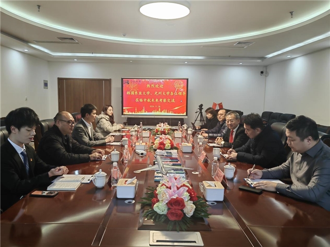 交流洽谈环节,中航未来与韩国东亚大学、光州大学,贵州民用航空职业学院、贵州城市职业学院等,进行深入沟通交流。