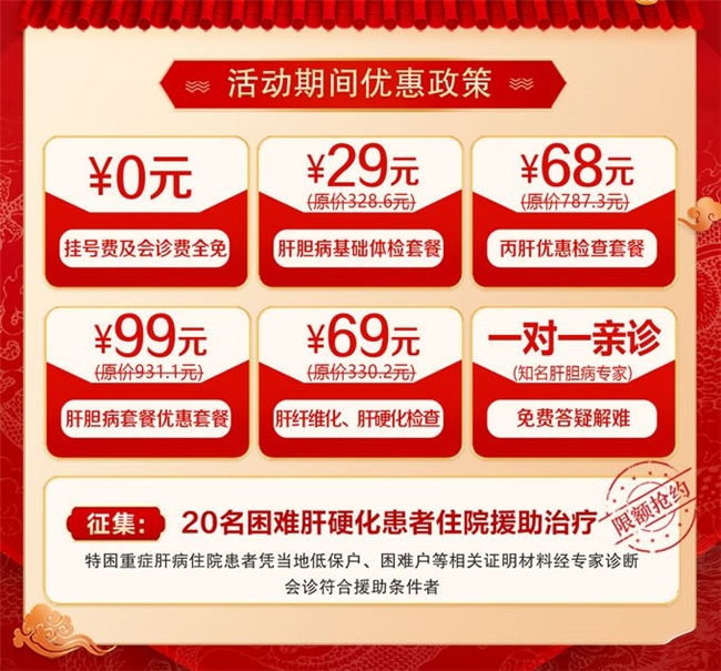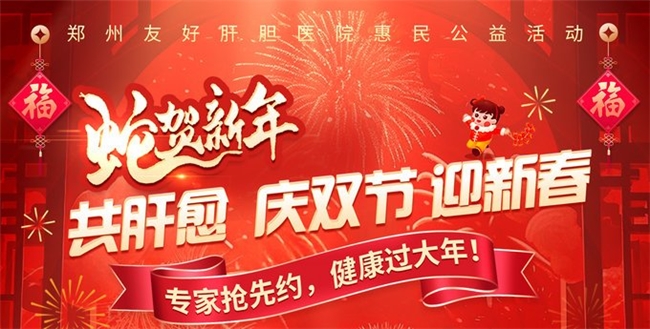 双节之际,天气严寒,肝病高发,为了更好地服务广大民众,提高公众对肝胆病防治的认知,普及肝炎防控知识,营造全民参与、科学防治肝炎、共享健康的良好氛围,郑州友好肝胆医院特于2025年1月1日-1月28日,举办“共肝愈 庆双节 迎新春”惠民公益活动!