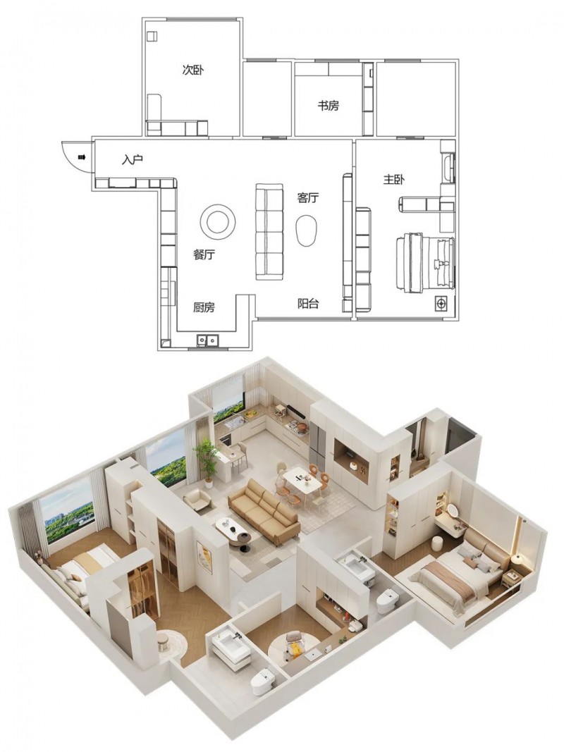 兰女士一家喜欢简单温馨的住所,希望家里有足够多的收纳空间,设计师采取奶油风的装修风格,来打造家的温馨之感,白色与原木色的搭配温润自然,整体空间和谐而美好。喜欢这套设计的朋友记得收藏哦~