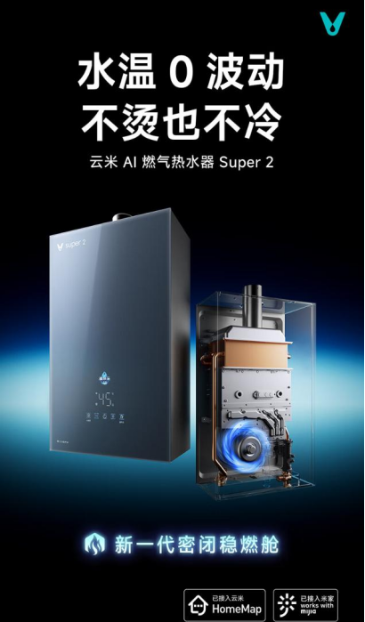 云米燃气热水器AI Super2采用了新一代密闭稳燃舱结构,配合水气双调技术和双通道水伺服系统,能够精准控制火力大小和水量大小,使水温快速达到并恒定在设定值。即使全屋多点用水,也能保持恒温效果,温度波动控制在±0.2°C以内。这一特点让用户在洗澡或洗碗时,都能享受到稳定舒适的热水,四季如春,温暖如初。