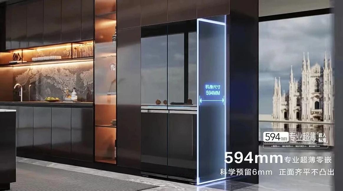 在厨居场景上,海尔冰箱确立“594mm才是真超薄”的行业规范,以594mm专业超薄零嵌冰箱为用户带来正面平齐、两侧无缝的厨居一体化体验。