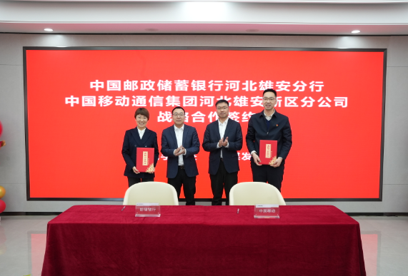 当天,邮储银行河北雄安分行与中国移动河北雄安新区分公司签订了战略合作协议。