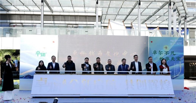 2025年1月10日上午,卓物钱币文化中心在中国数字 E-park 园区建科广场中庭迎来了其盛大的开业仪式。同时也是卓物钱币博物馆与卓物天工修复博物馆对外试运营的日子。当日,广州市黄埔区区委宣传部、黄埔区文化广电旅游局等政府部门的嘉宾,国家对外文化贸易基地(广州)、南方文交所艺术品中心等行业翘楚,广东省集藏投资协会、广州南方学院等代表,爱藏评级、公博评级等企业人士,以及钱币收藏界的知名主播和众多热忱的钱币收藏爱好者们,纷纷携着对钱币文化的热爱与期待而来,现场高朋满座,共同见证这一荣耀时刻,气氛热烈而庄重。