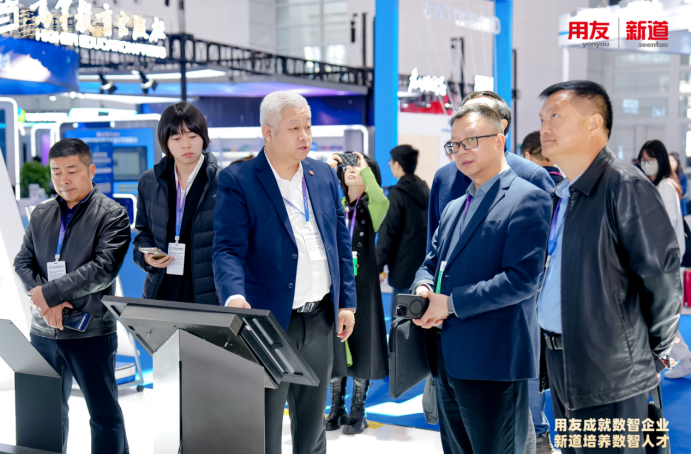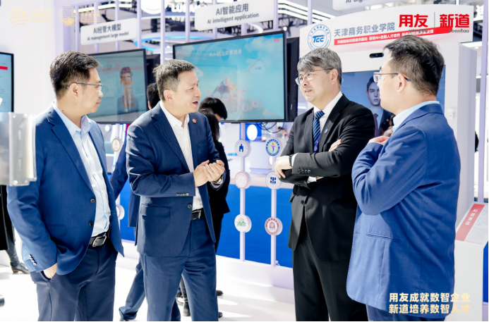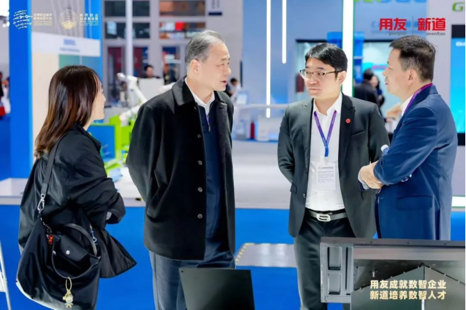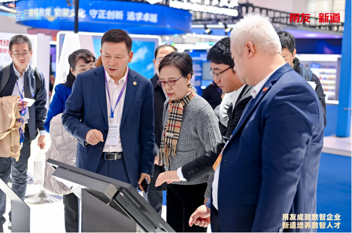 教育部职业教育发展中心主任林宇调研用友新道展区,并对推进数智人才培养和数智教育发展提出了指导意见。